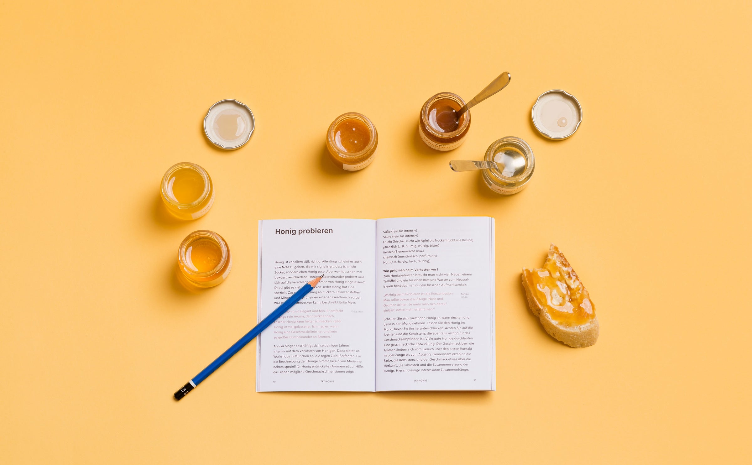 Ich habe bewusst fünf sehr unterschiedlich schmeckende Imkerhonige für euch ausgewählt und die wichtigsten Antworten zu den Themen Bienen, Herstellung, Qualität und Verwendung von Honigen im beiliegendem Booklet zusammengefasst.