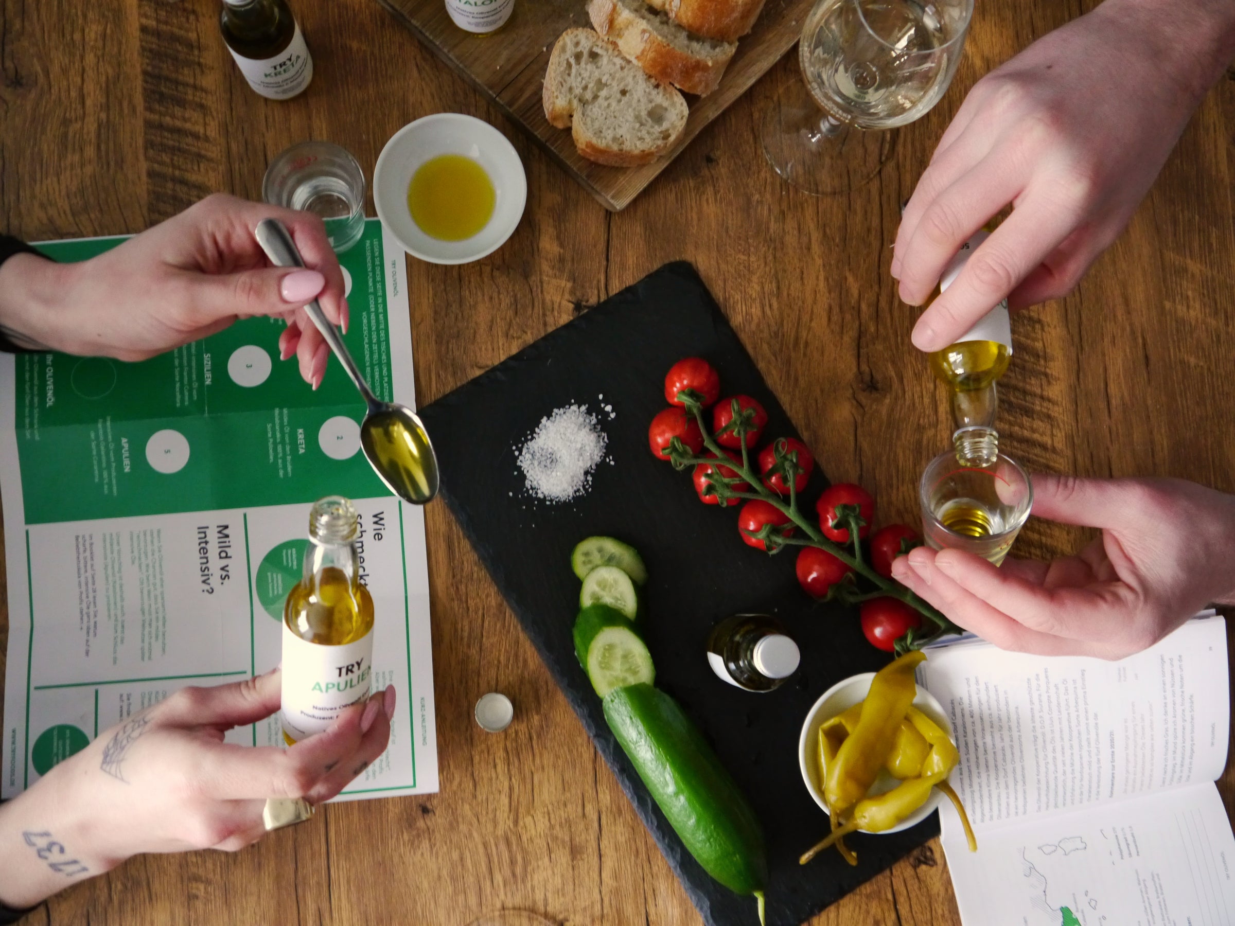 Ladet ein paar Freunde ein und veranstaltet eure eigene Olivenöl- Verkostung!